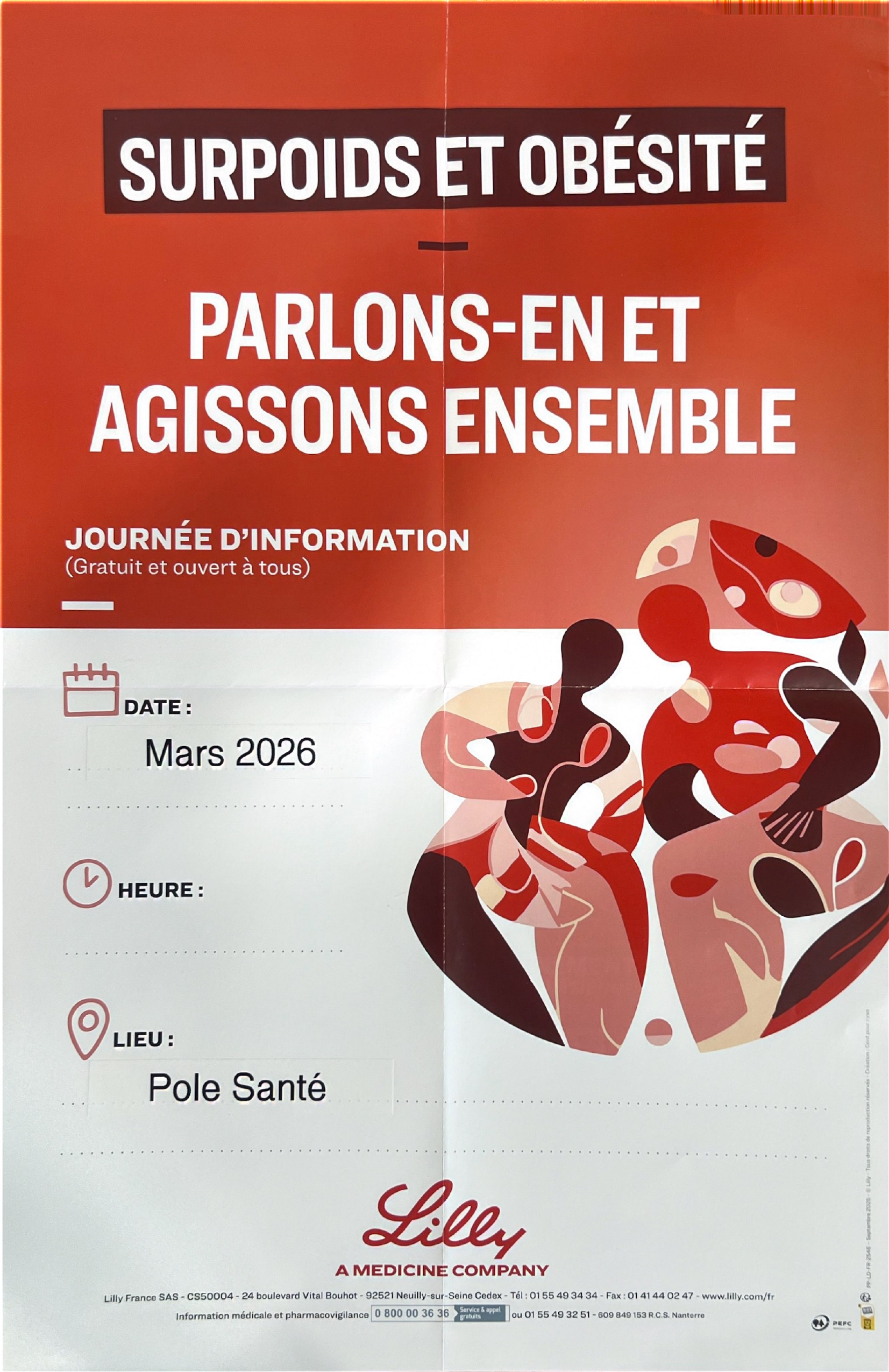 En partenariat avec le laboratoire Lilly, une action de sensibilisation et de repérage autour du surpoids et de l’obésité est organisée au sein du Pôle de Santé.